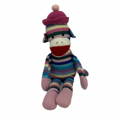 Toys R Us Rainbow Striped Sock Monkey Knit Plush Stuffed Toy With Hat 20 Tm Ebay